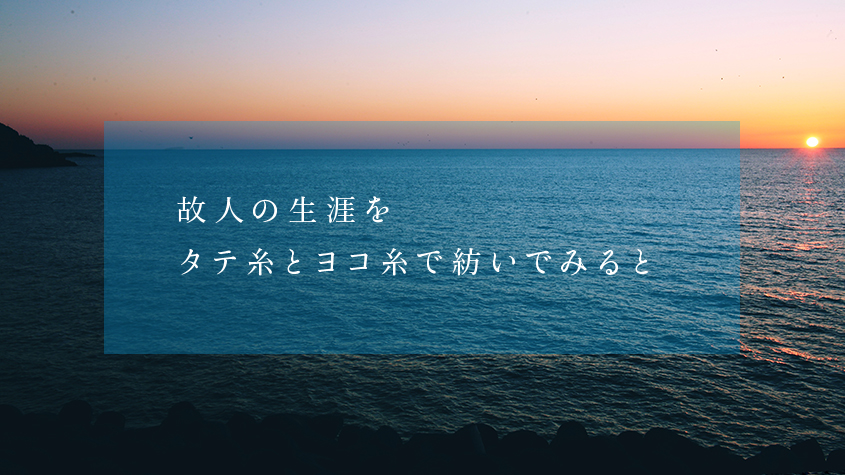 記憶葬 > 故人史:亡き人の一生をタテ糸で紡ぎます。 《美しいWeb告別記|記憶葬》は最大11ページで構成される故人を心から弔い偲ぶための告別コンテンツ。なかでも「故人史」ページは、故人の誕生からその晩年までの軌跡を写真画像と文章で組み合わせ、亡... -